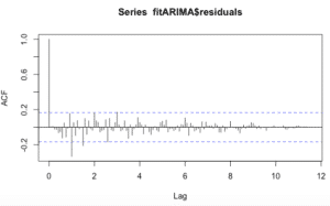 El proceso de ajuste es un proceso recursivo y necesitamos ejecutar esta función arima () con diferentes valores (p, d, q) para encontrar el modelo más optimizado y eficiente.