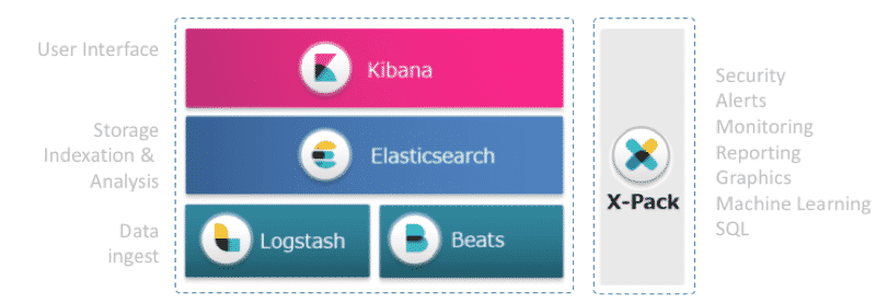 X-Pack is a proprietary tool with a 30-day trial, which allows security options, alerts, monitoring, reporting, graphics, machine learning and SQL.